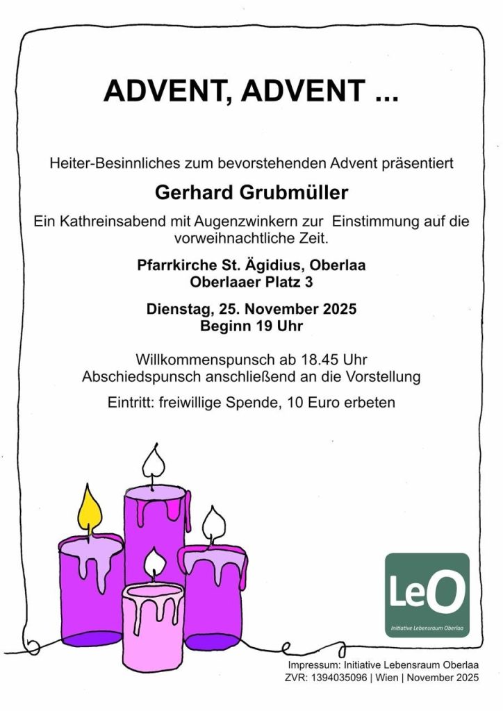 - 25.11. 18:45 Advent Advent mit Gerhard Grubmüller Pfarrkirche Oberlaa